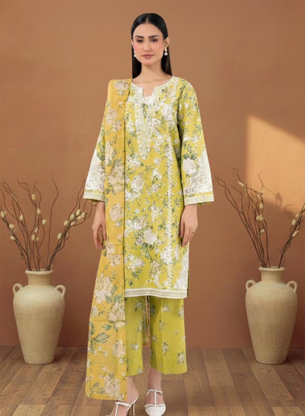 Dual color availability: This premium lawn design is offered in two refreshing shades: a vibrant lime yellow and a cool mint green.